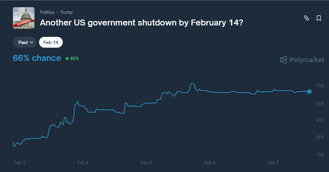 Another risk that might put a burden on the crypto market is the possibility of a government shutdown. Polymarket data indicates that there is a 66% probability of a partial shutdown by next week.