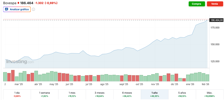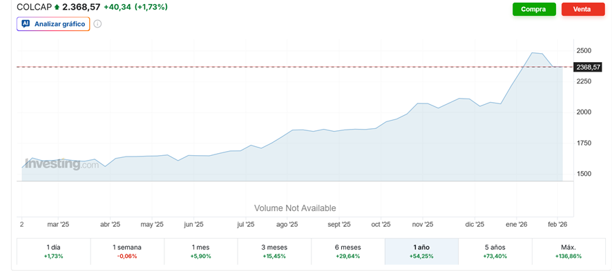 The following comparison is important. As can be seen in the following charts, both the Brazilian stock exchange (Bovespa) and the Colombian stock exchange (Colcap) have performed much better over the past year. The Bovespa: