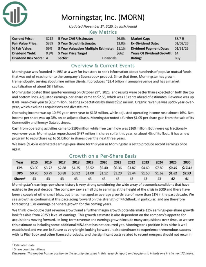 Blue Chip For 2026 #1: Morningstar Inc. (MORN)