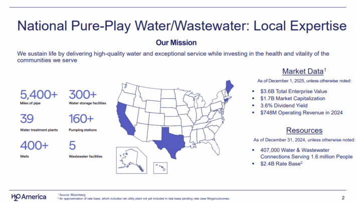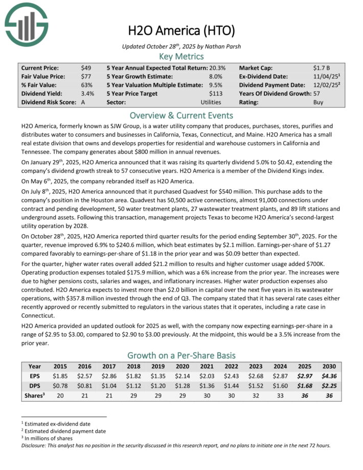 H2O America reported third-quarter results on October 28th, 2025. Revenue for the period grew 6.9% to $240.6 million and topped expectations by $2.1 million. Earnings-per-share of $1.27 was up from $1.18 in the same period of the prior year and was $0.09 ahead of estimates.