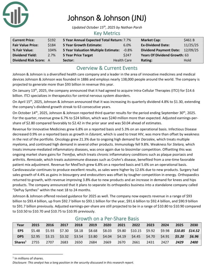 Click here to download our most recent Sure Analysis report on JNJ (preview of page 1 of 3 shown below):