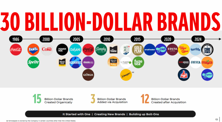 Coca-Cola is one of the largest beverage companies in the world, as it owns or licenses more than 500 unique non-alcoholic brands. The $300 billion company has operations in more than 200 countries worldwide. The company’s products are served about 2 billion times each day, producing annual revenue of close to $48 billion. The company’s portfolio includes 30 brands that generate at least $1 billion in annual revenue.