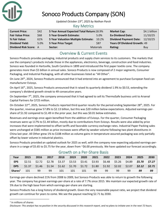 Sonoco Products reported third-quarter results on October 22nd, 2025.