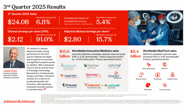 On October 14th, 2025, Johnson & Johnson reported third-quarter results for period ending September 30th, 2025.