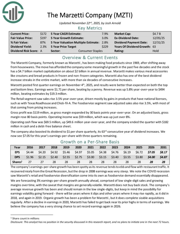 Marzetti posted first quarter earnings on November 4th, 2025, and results were better than expected on both the top and bottom lines.
