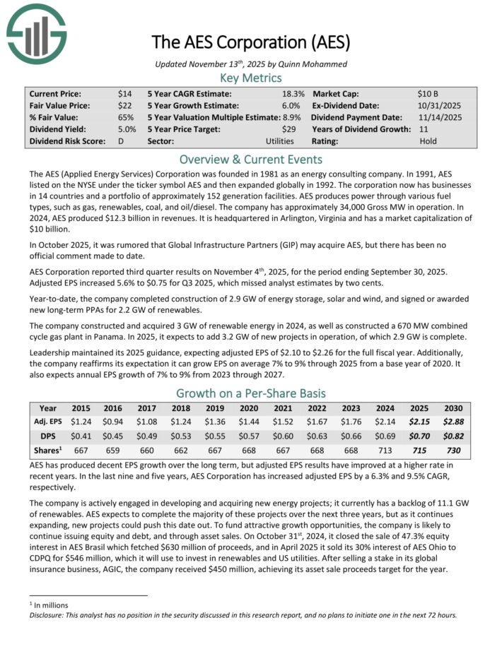 In October 2025, it was rumored that Global Infrastructure Partners (GIP) may acquire AES, but there has been no official comment made to date.