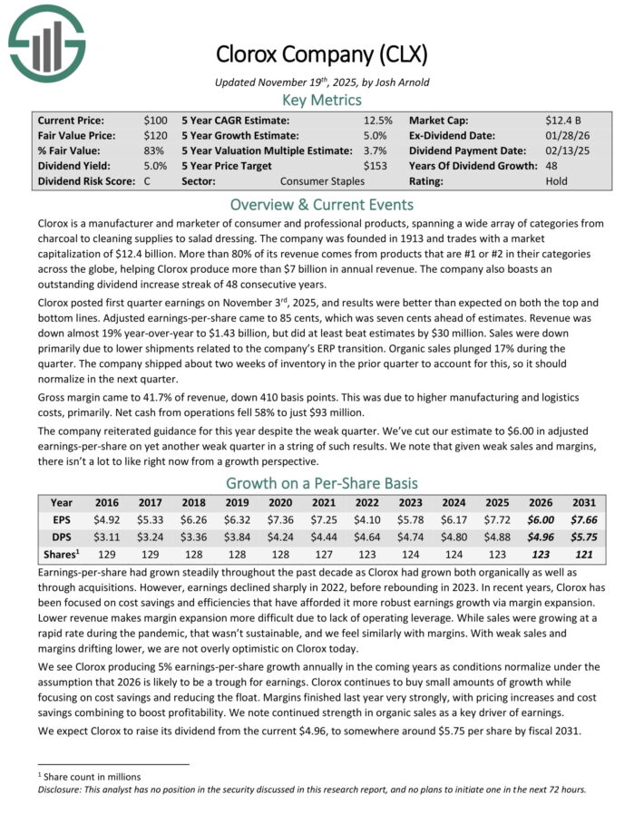 Clorox posted first quarter earnings on November 3rd, 2025, and results were better than expected on both the top and bottom lines. Adjusted earnings-per-share came to 85 cents, which was seven cents ahead of estimates.