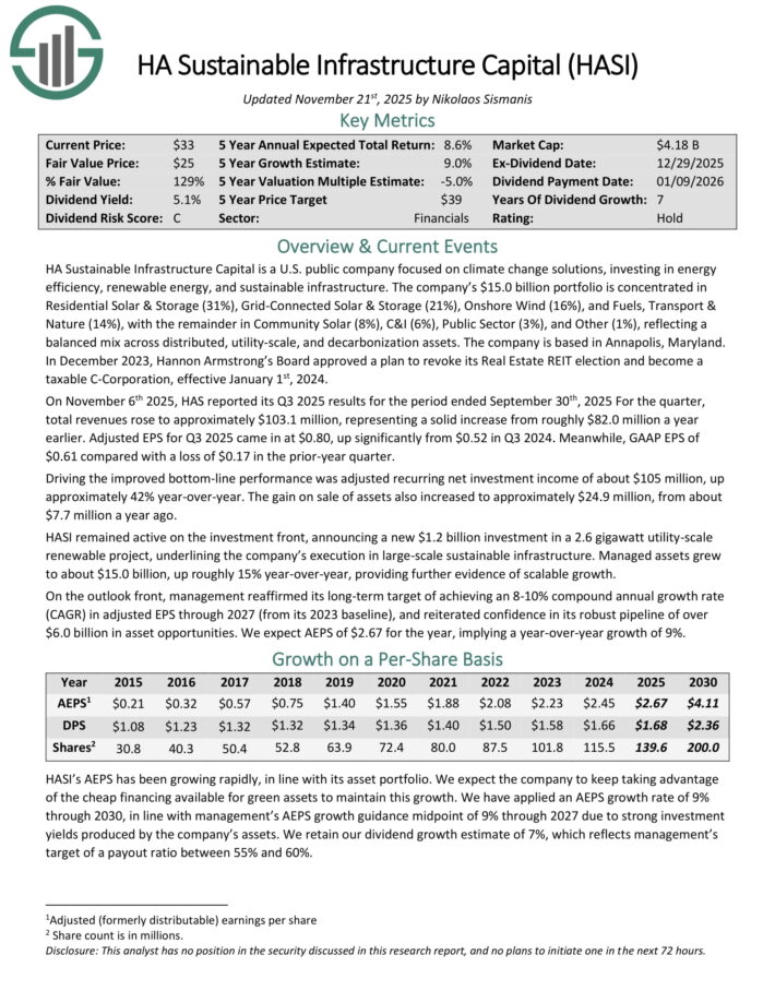 Click here to download our most recent Sure Analysis report on HASI (preview of page 1 of 3 shown below):