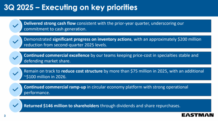 On November 3rd, 2025, Eastman Chemical reported its Q3 results for the period ending September 30th, 2025.