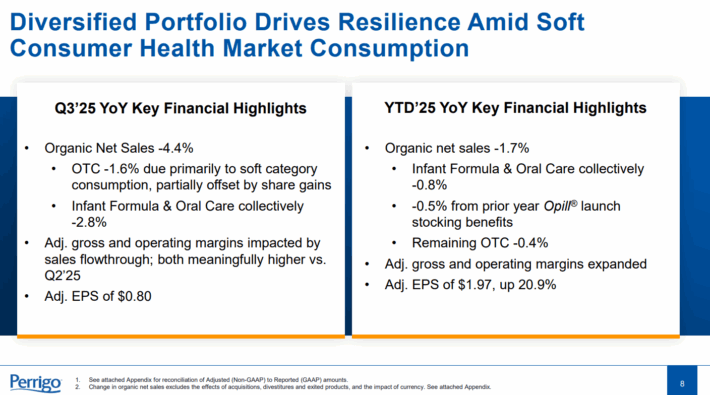 On November 5th, 2025, Perrigo reported third quarter results for the period ending September 30th, 2025. For the quarter, revenue decreased 5.5% to $1.04 billion, which was $60 million less than expected. Adjusted earnings-per-share of $0.80 compared to $0.81 in the prior year, but this was $0.03 above estimates.