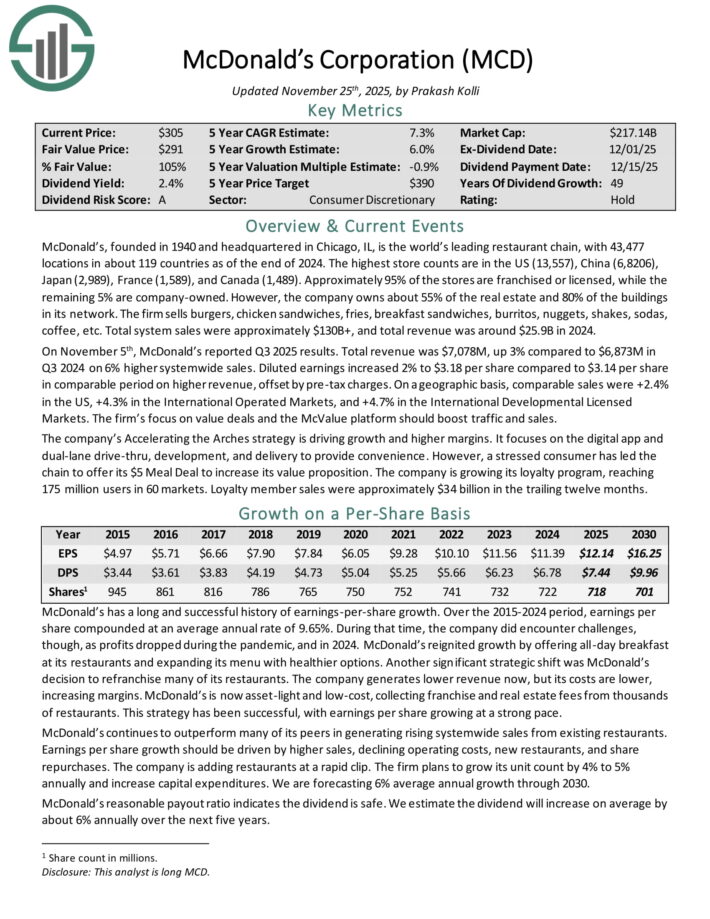 Click here to download our most recent Sure Analysis report on MCD (preview of page 1 of 3 shown below):