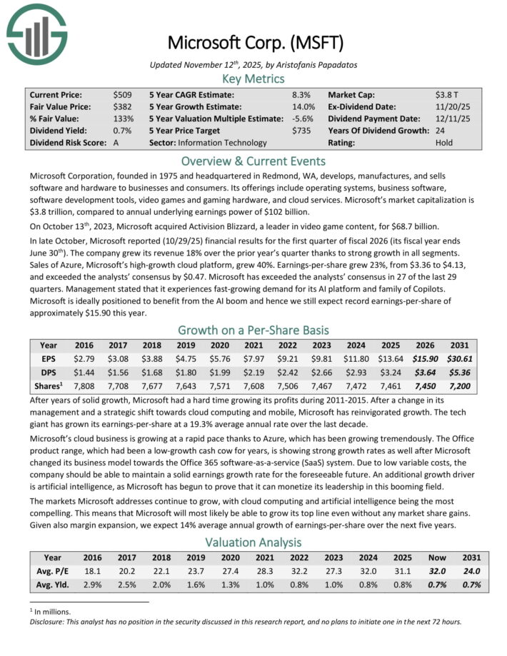Click here to download our most recent Sure Analysis report on MSFT (preview of page 1 of 3 shown below):