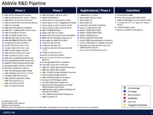 AbbVie delivered strong Q4 2025 results, beating expectations with adjusted EPS of $2.71 (+$0.06 vs. estimates) and revenue of $16.6 billion, up 10% year over year. Growth was led by immunology, where Skyrizi rose 33% to $5.0B, and Rinvoq increased 30% to $2.4B, more than offsetting Humira’s 26% decline to $1.25B.
