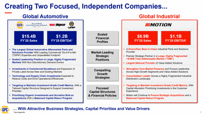 Genuine Parts also announced that it would be splitting its automotive and industrial businesses into two separate publicly traded companies.