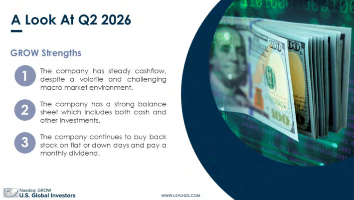 Currently, GROW is having success growing the topline, and we expect this will continue as incremental improvements in its network and brand power are made. With the current portfolio, the company is making large bets on precious metals, crypto, and airline funds.