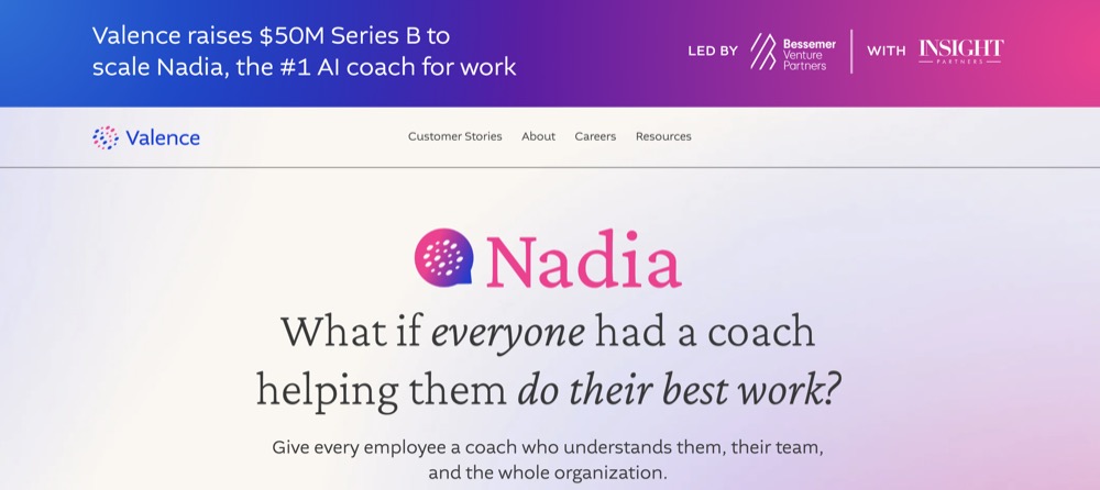 Round: Series BDescription: Valence provides an AI coach for employee development and organizational performance. Founded by Levi Goertz and Parker Mitchell in 2017, Valence has now raised a total of $75.1M in total equity funding and is backed by Insight Partners, Bessemer Venture Partners, Everywhere Ventures, and M3 Lending.Investors in the round: Bessemer Venture PartnersIndustry: Artificial Intelligence (AI), Generative AI, Information Technology, SaaSFounders: Levi Goertz, Parker MitchellFounding year: 2017Total equity funding raised: $75.1M